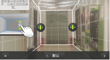 2、拍照后,软件会自动对照片进行测算,几秒钟后你将看到这个界面。这时需要手工进行微调,只需要通过拖拉白线,对其空间的几条交界线,大概对准后点击屏幕右下角的尖括号。