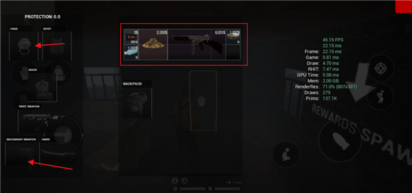 5、打开背包将武器放置在左边的武器槽中,资源则点击即可使用;