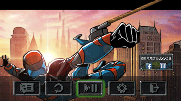 2、独特的游戏设置,非一般的跑酷游戏!和超级反派战斗,使用蛛丝飞荡、攀爬墙壁、完成高空跳跃。