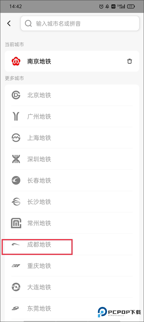 2、选择你想看的新城市名字,点击下载它的地铁数据包。