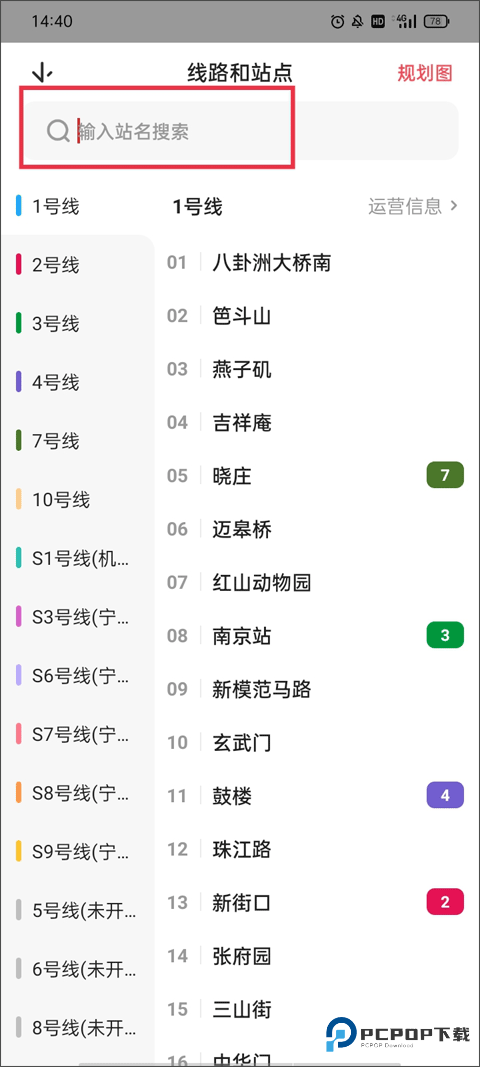 提前规划?点搜索,所有站点按字母排好,找站名点一下就行了。