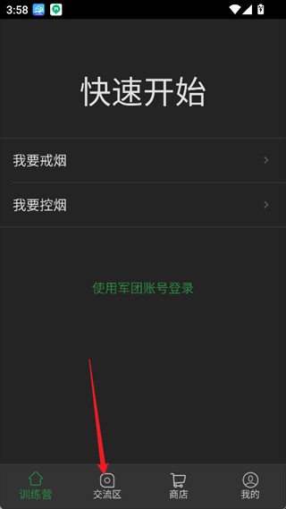 1、启动应用后,点击底部导航栏进入社区交流专区。