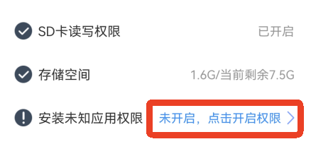 2、点击第三行蓝色字,允许安装应用,点击打开。