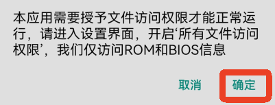 5、点击【确定】,允许软件访问所有文件,开启后可以扫描你手机里的游戏文件。