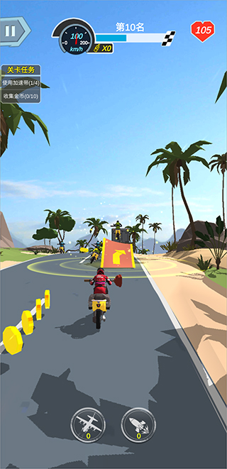 2、赛道上有金币可以收集,收集可以在商店进行购买强力摩托载具。