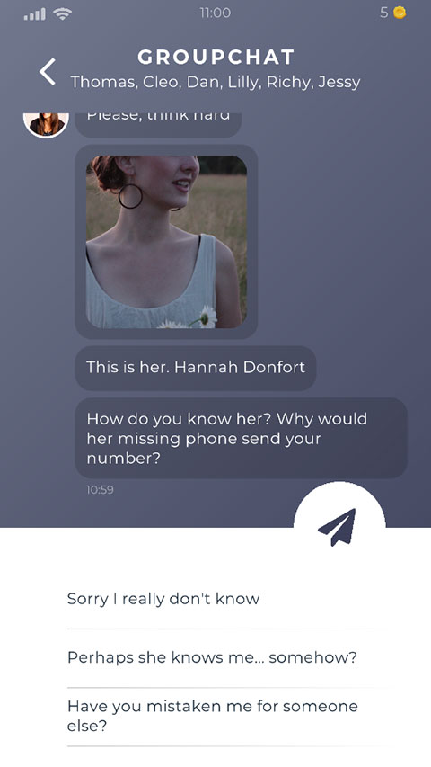 3、点击对话框和他对话聊天,发现托马斯的女友汉娜在3天前失踪…