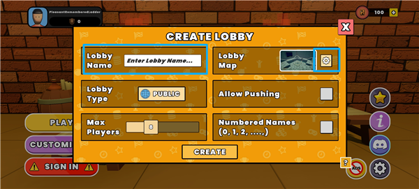 4、然后勾选房间是否私密,设置最大游玩人数,点击【CREAT】创建。