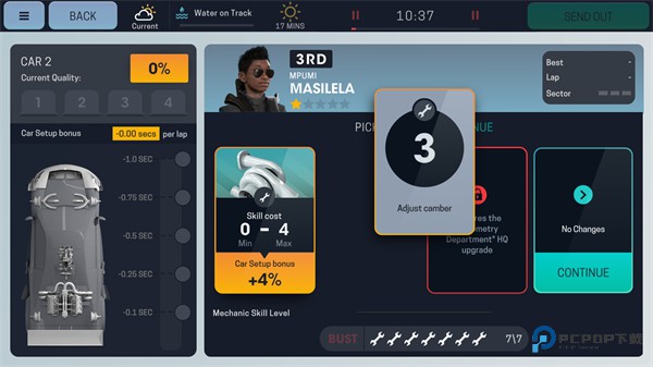 车手的选择与培养是另一个具有决定性作用且可深度经营的环节。作为车队经理,你需要能够满足车手的职业发展期望,最终签订一份双方都认可的长期合约。签约成功后,车手在比赛中的实际表现会为他赢得技能点,用于提升总共六项个人能力指标(各项指标提升得越高越好)。