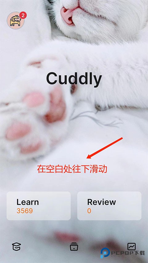 1、在 app 主界面任意空白处,手指轻轻下滑。