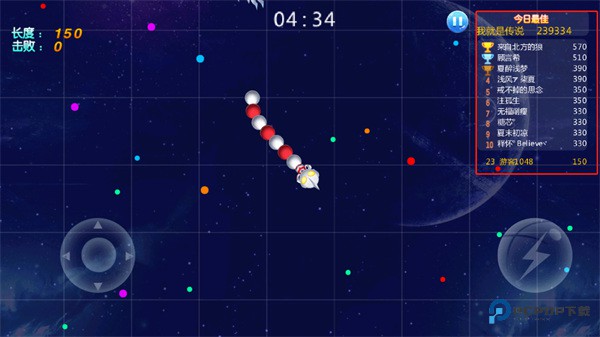 3、开始游戏后,左上角的小窗口一眼就能看到你控制的角色长度和击败了多少对手,这是你的战绩体现。