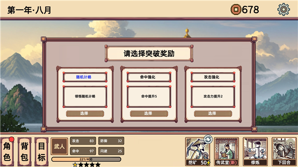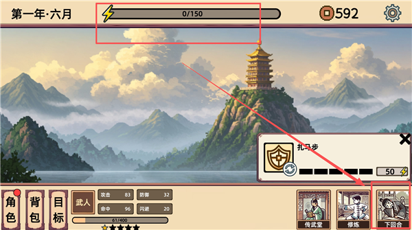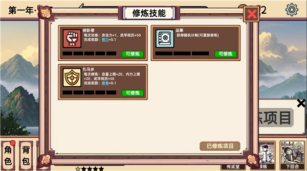 3、玩家每回合可以修炼武学,点击【选择修炼项目】。
