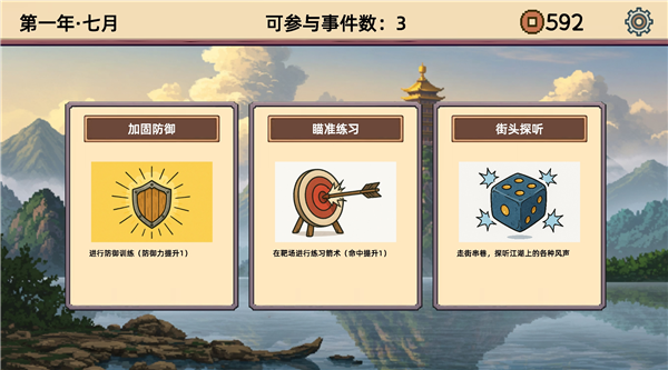 9、玩家每回合可能会有随机事件,随着境界提升,可参与事件数量增加。