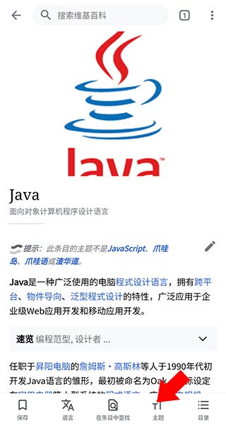 下载并打开中文版维基百科应用,点击顶部的搜索按钮,进入搜索界面。