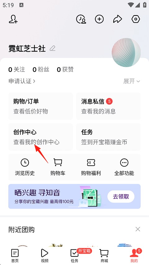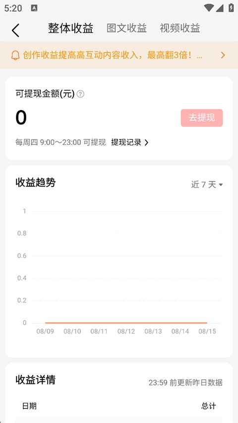 5、作品的具体收益可以点击“创作中心”的“收益提现”查看。