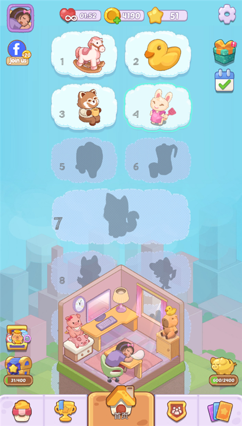 1、进入梦幻房间Dreamy Room游戏,选择关卡。