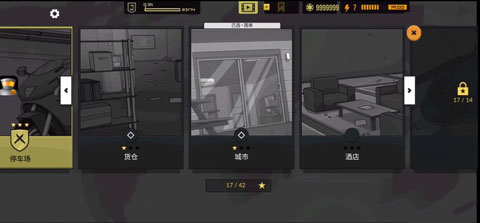 包含停车场、货仓、城市、酒店等多个主题,每个主题自成一派。