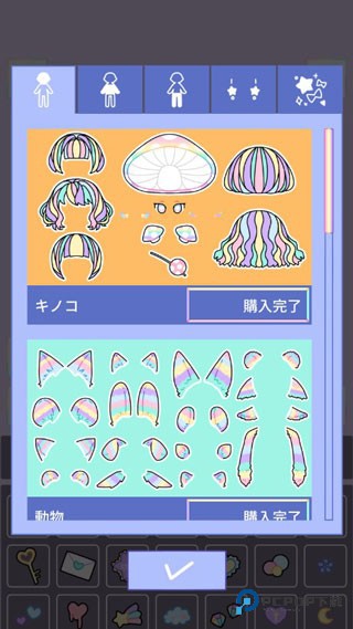 3、切换至底部菜单栏,左右滑动就能浏览不同风格的服饰、发型、配饰等,随心搭配。