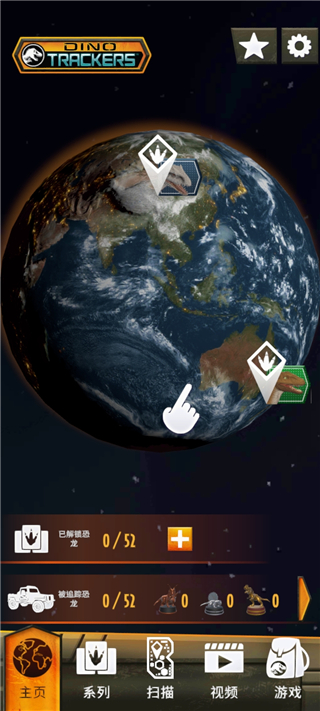 1、在本站下载安装好侏罗纪世界真相之后,进入游戏主页可以看见地球并有着恐龙图标点击;