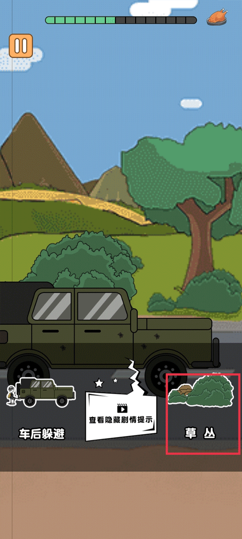 8、躲在汽车后后,子弹打在汽车上会爆炸,“草丛”。