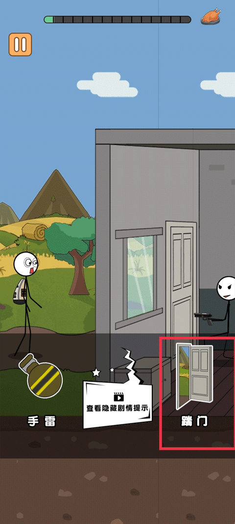 2、门后面有人扔手雷有可能反弹到自己,“踹门”。