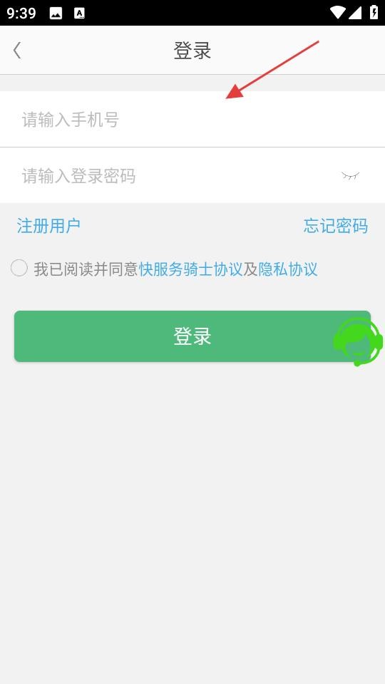 2、登录页面,需依次输入手机号、登录密码,勾选同意协议后,点击绿色登录按钮完成登录,也可选择注册或找回密码。