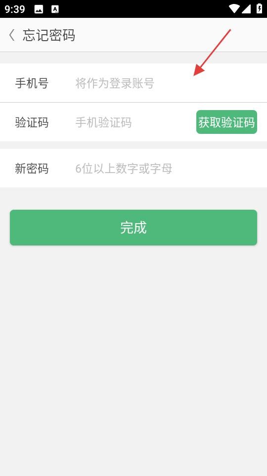 3、忘记密码时,在对应页面填手机号、获取并填验证码,设置6位以上新密码,点完成重置。