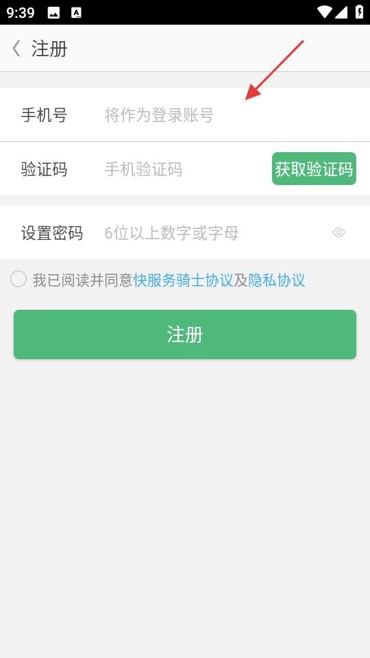4、注册流程中输入手机号、获取验证码,设置6位以上密码,勾选协议后点注册,创建新账号。
