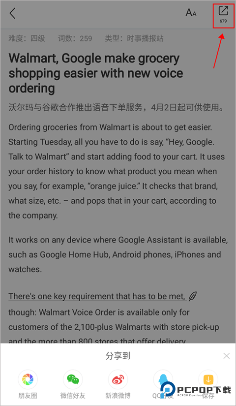 点击右上角图标触发分享功能