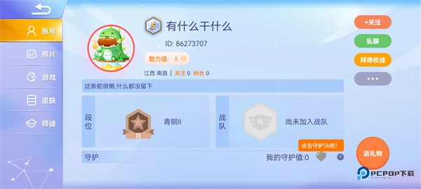 5、点击关注后,就能看到这位好友的游戏主页信息了。