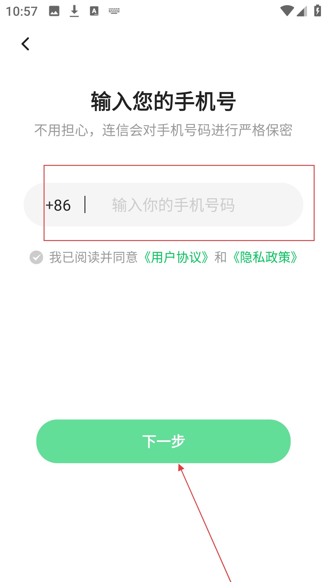 2、在登录引导页面点击【立即登录连信】按钮进入手机号输入页面。
