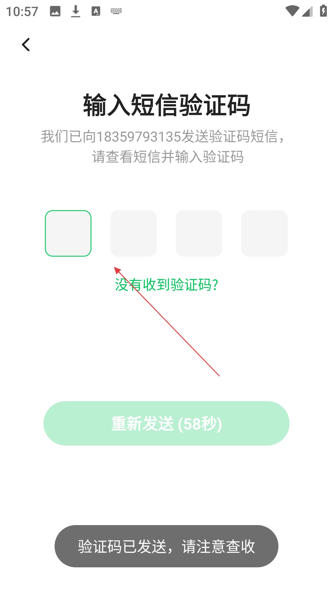 3、在手机号输入页面输入手机号后点击【下一步】按钮进入验证码输入页面。