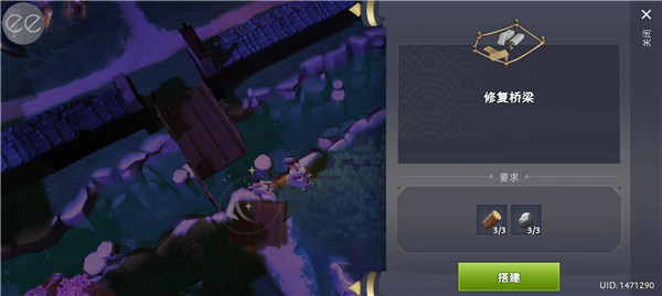 9、之后玩家根据指引,收集木头和石头即可修复桥梁。