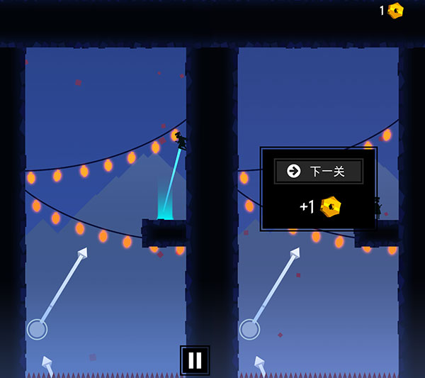 1、按住屏幕后,再划向要跳的方向,然后松手,忍者即可朝该方向冲刺。