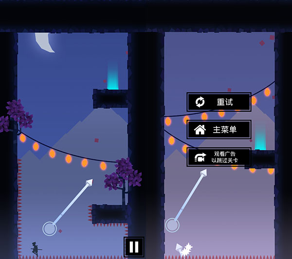 2、主要的玩法其实也十分的简单易上手,玩家要控制忍者的不停上升避免被最下的锯齿刺死,顺便消灭敌人来获得加分。