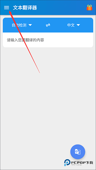 1、打开文本翻译器 App,直接点左上角的那个图标。