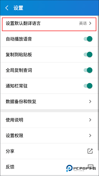 3、在设置这儿,选择【设置默认翻译语言】进入。
