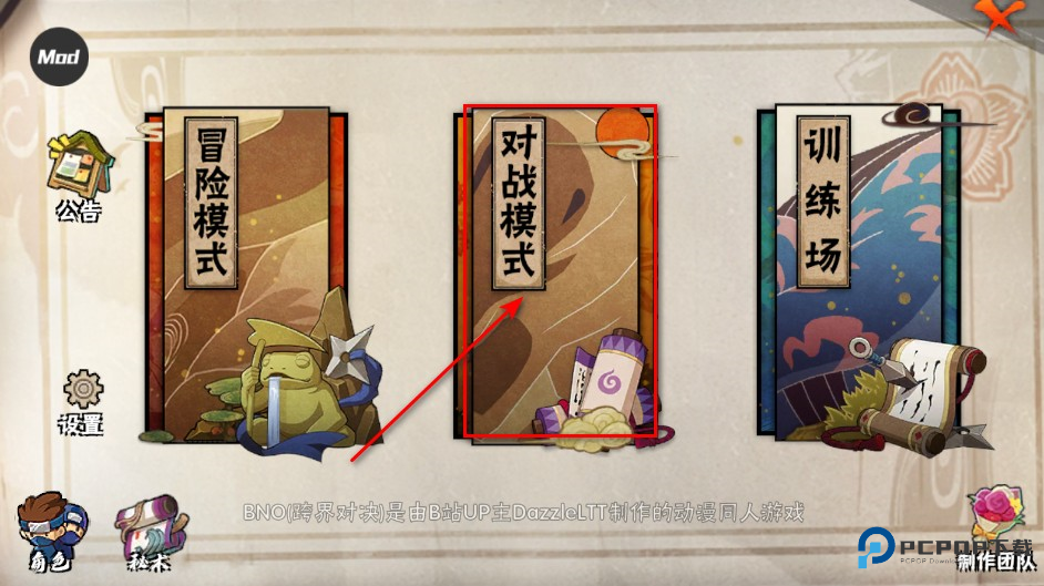 1、进入游戏主界面,点击右下角「对战模式」图标进入联机选择页。