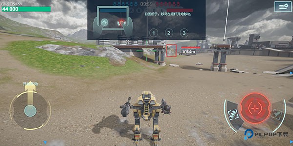 2、战斗开始,利用屏幕左侧的虚拟摇杆拖动,就能指挥你的机甲灵活移动。