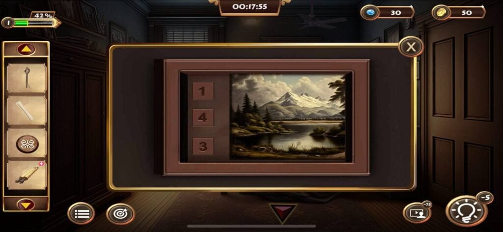 现在点击门右侧远处墙上的床的图片。点击滑动图片,你会看到两个数字“143526”。这两个数字组合是我们下一步的线索。