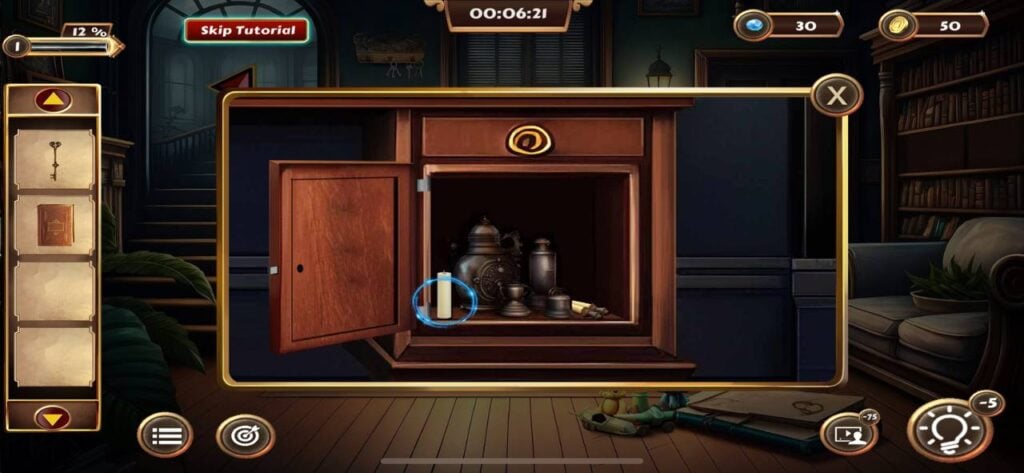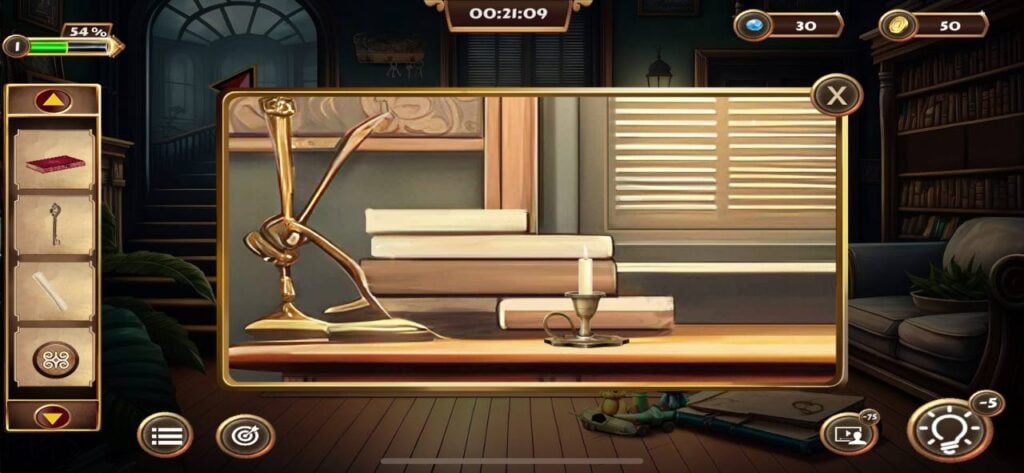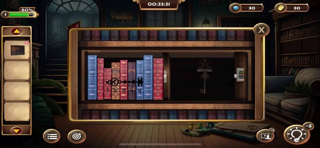 从盒子里取出书,然后点击房间右侧沙发旁的书架。打开书架,从你的物品栏中添加三本缺少的书来填补空缺。按照“1-2-3-4-5”的顺序旋转书架上的书,即可解开谜题。