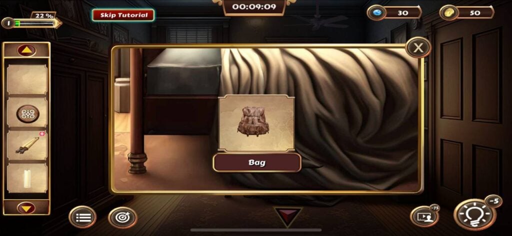 接下来,点击床下的区域,移开毯子,然后从这里收集一个袋子。
