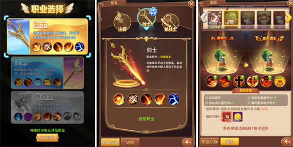 游戏中主角及同伴拥有多种职业,每种职业有不同的特点,提升职业等级将带来巨额的战力提升!