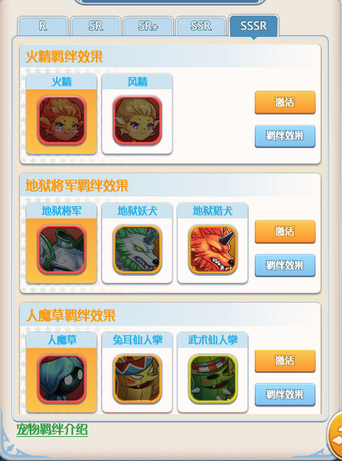 5、宠物还附带羁绊系统,收集到拥有羁绊关系的宠物,可以激活羁绊,获得属性加成甚至是特殊效果加成,大大增加战斗力。