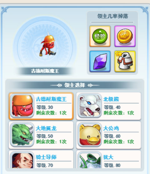 (4)当某个领主挑战次数为0则标识已击杀,当天不可再挑战