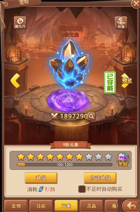 同时玩家也可以通过直接使用元素之灵对7阶及7阶以下的元素进行直接升阶,元素之灵可以通过特殊活动进行获取。