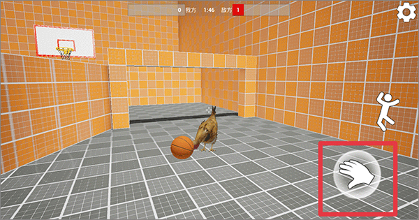 3、然后把球运到自方篮球框下点击篮球的图标进行投篮,最先到达分数的人获得胜利
