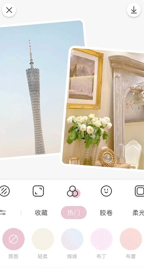 -贴纸:流行的日式手绘贴纸不断更新滤镜:独特的风格滤镜使色彩混合如此简单