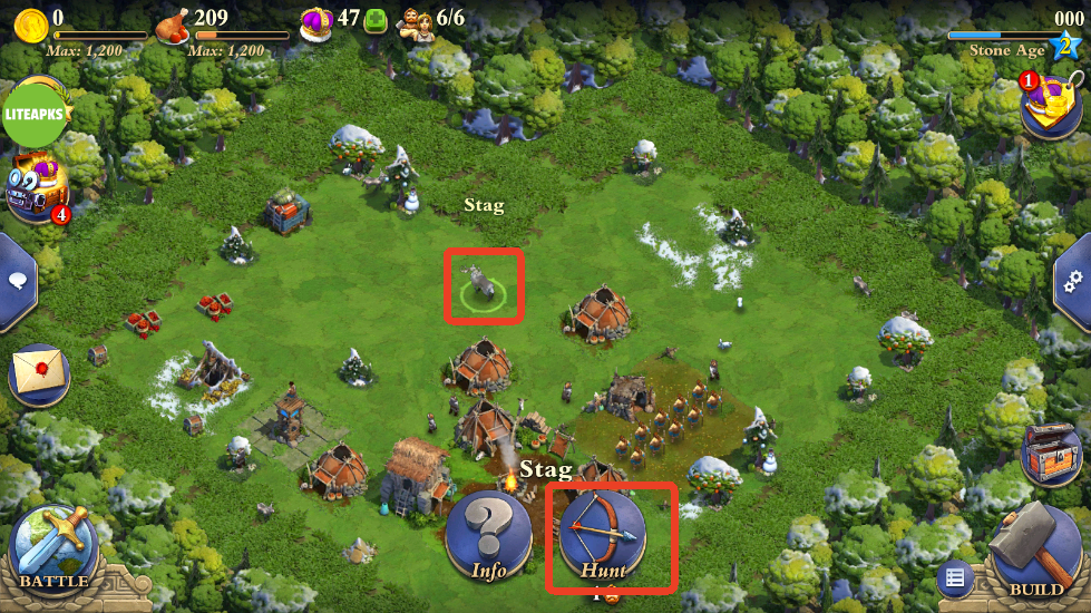 2、就会有小人自动攻击动物,杀死之后就会出现倒计时自动拾取。