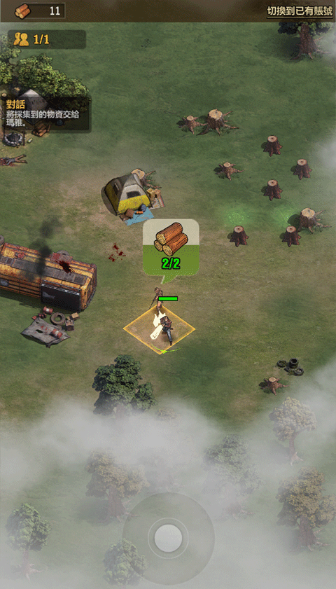 1、进入行尸走肉幸存者中文版游戏后首先根据左上角的任务去收集物资。