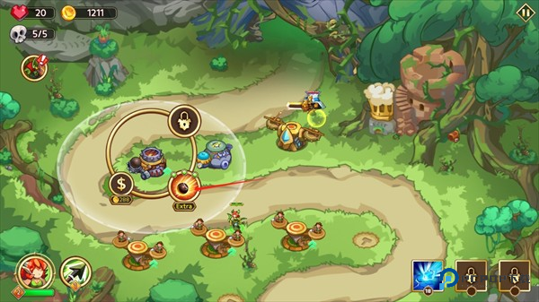 2、找找那个显眼的锤子符号,点它!选好位置建造你的第一座防御塔。发现金币够了吗?点塔还能升级,让火力更猛防御更强。